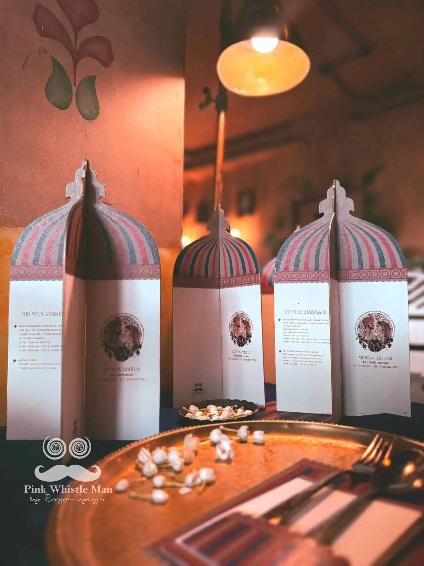 This celebration captured the soul of the Kashmiri valleys, weaving their beauty into every detail. The Save the Date came alive with a graceful Pashmina weave animation, while the main invitations and stationery carried delicate nods to the region, colourful yaks, carts brimming with valley blooms, lush apple orchards, and even a whimsical dancing dragonfruit lady. Through a seamless zoom-in animation, these elements unfolded like pages of a storybook, leading to the moment Akshita and Umang stepped into a new chapter of their lives